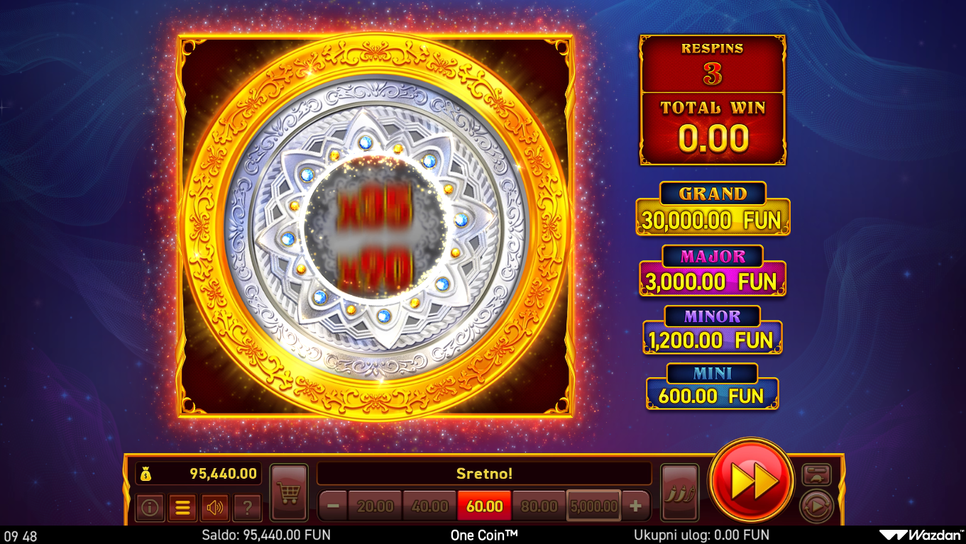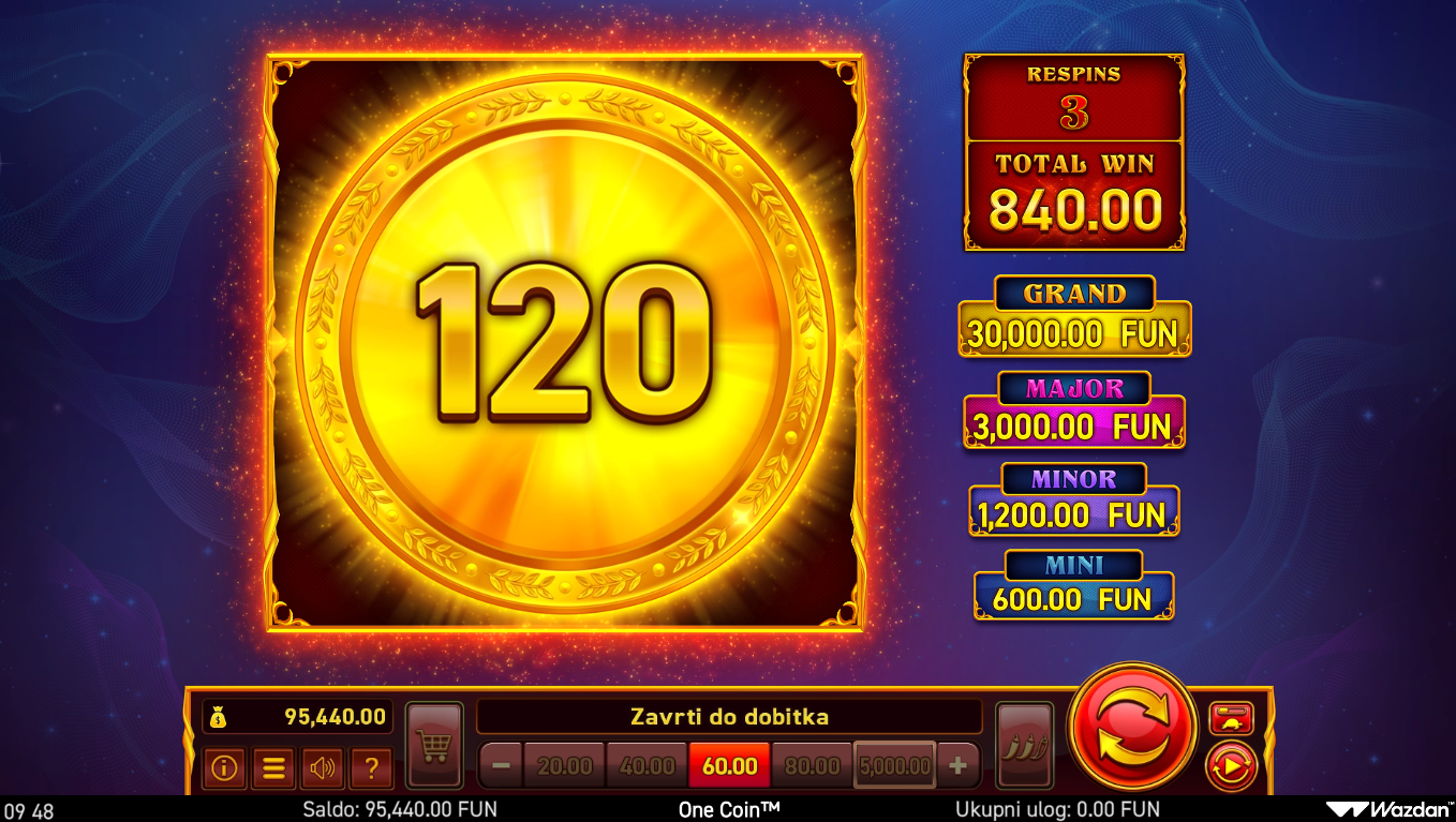 One Coin je minimalistički, ultra jednostavan slot koji se fokusira na čistu akciju, brze spinove i instant dobitke. Igra izgleda moderno, ali zadržava šarm klasičnih automata, sve se vrti oko jedne, moćne kovanice. Wazdan je ovdje stvorio izuzetno direktnu igru bez nepotrebnih komplikacija, savršenu za brze sesije ili igrače koji vole jednostavnost. Vizuali su čisti, animacije brze, a atmosfera fokusirana isključivo na potencijal. Ako želiš slot bez distrakcija, One Coin je savršena pure spin opcija.