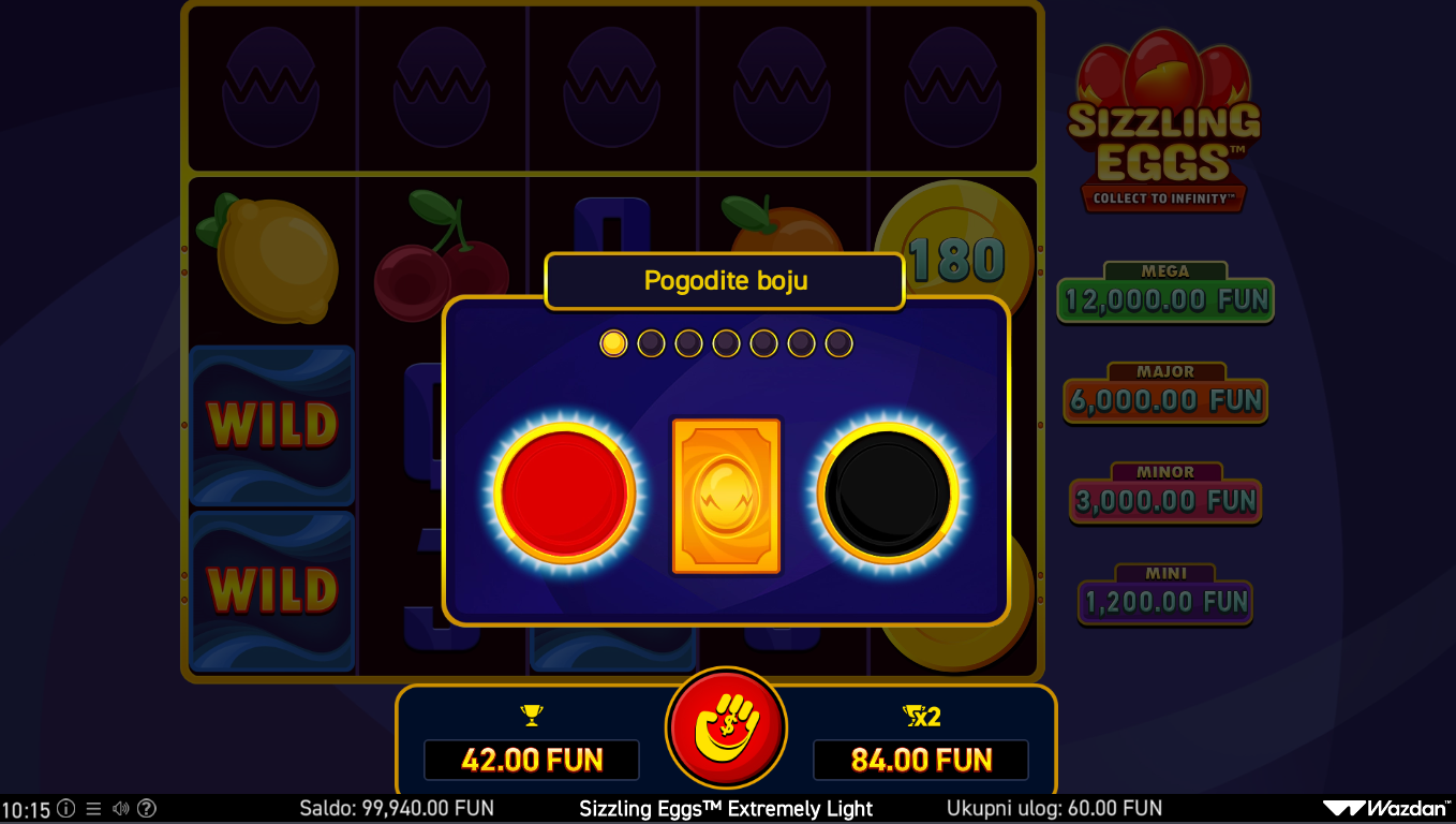 Zavrti valjke i skupljaj jaja, vatrene simbole i specijalne ikone koje aktiviraju bonus efekte i iznenadne isplate. Igra se fokusira na jednostavan, direktan gameplay, odabereš ulog, pritisneš spin i čekaš da se jaja otvore u tvoju korist. Extremely Light verzija je savršena za brze sesije jer smanjuje animacije i ubrzava tempo bez gubitka funkcionalnosti. Posebni simboli mogu aktivirati dodatne bonus efekte i multiplicirati potencijal dobitka. Cilj je iskoristiti moć sizzling simbola za što veće nagrade.
