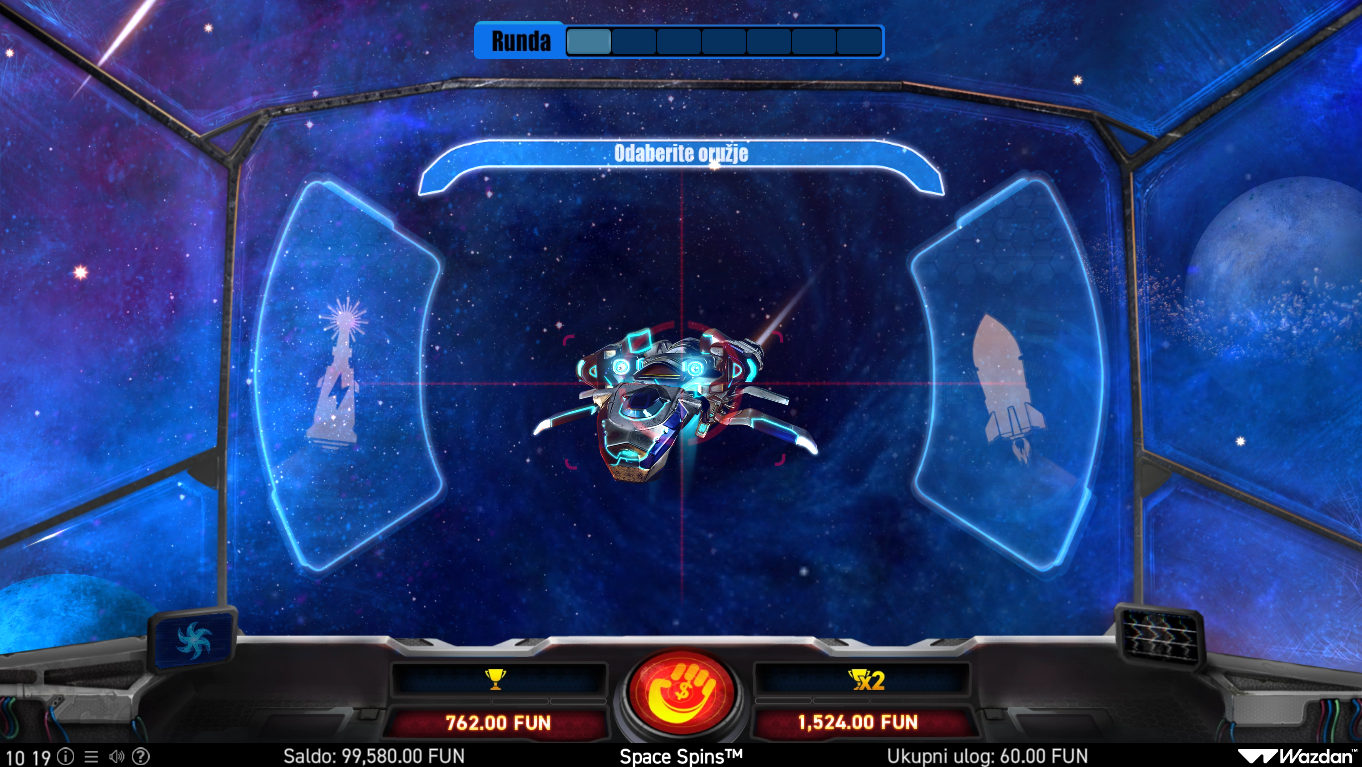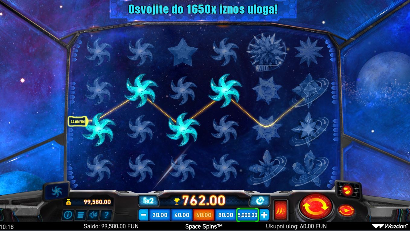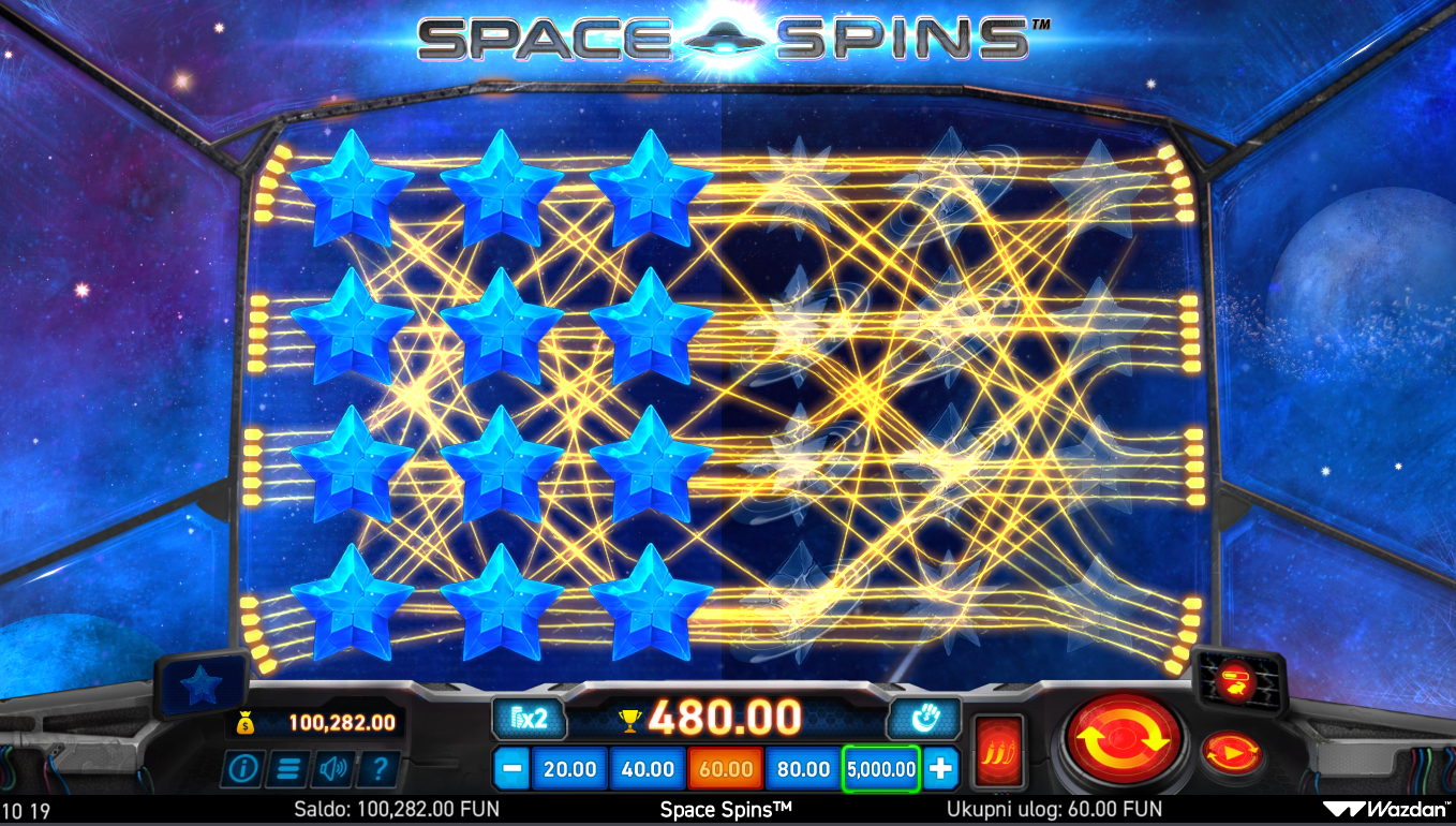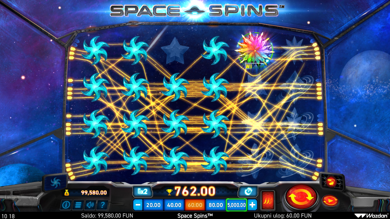 Space Spins vodi te duboko u svemir, među zvijezde, planete i neonske orbite gdje svaki spin izgleda kao mali svemirski let. Igra je vizualno upečatljiva, prepuna živih boja, futurističkih elemenata i energičnih svjetlosnih efekata. Wazdan je stvorio atmosferu koja kombinira retro space vibru i moderan dizajn, pa svaki spin odjekuje galaktičkim stilom. Na valjcima te čekaju vanzemaljski simboli, kozmičke energije i revolucionarni efekti. Ako voliš svemirsku tematiku i brze, dinamične slotove, Space Spins je čista galaktička zabava.