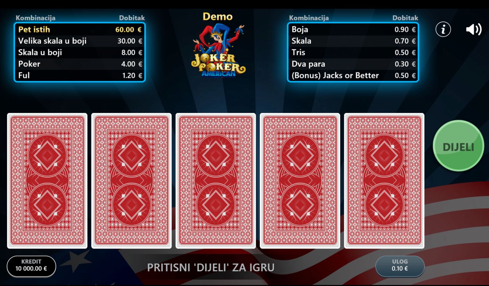 Dobrodošli u svijet brzog pokera u kojem svaki potez može biti presudan! American Joker Poker dolazi od providera
