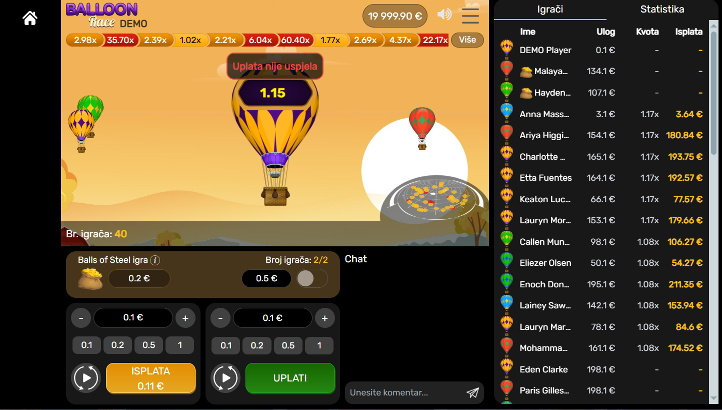 4. Koji su minimalni i maksimalni ulozi u igri Balloon Race?