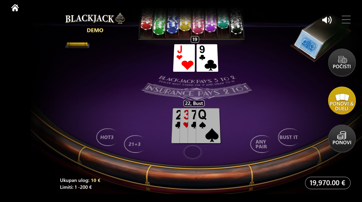 3. Da li je dostupna demo/probna verzija Blackjack 21+3?
