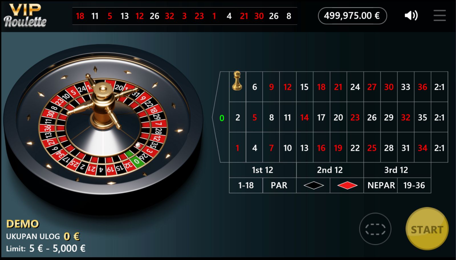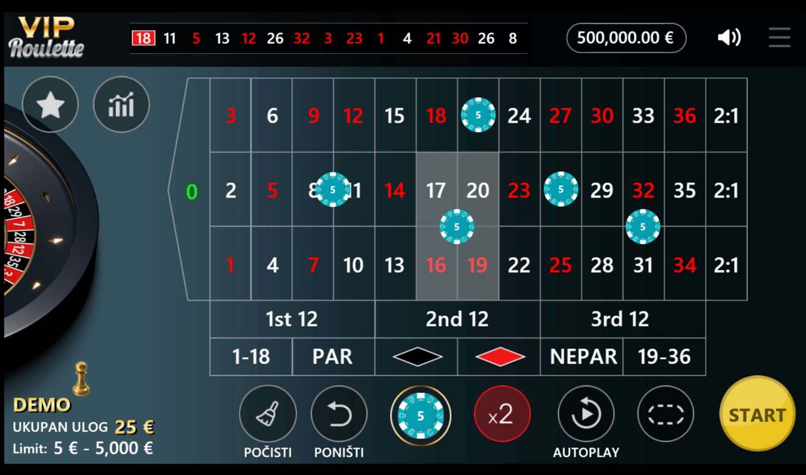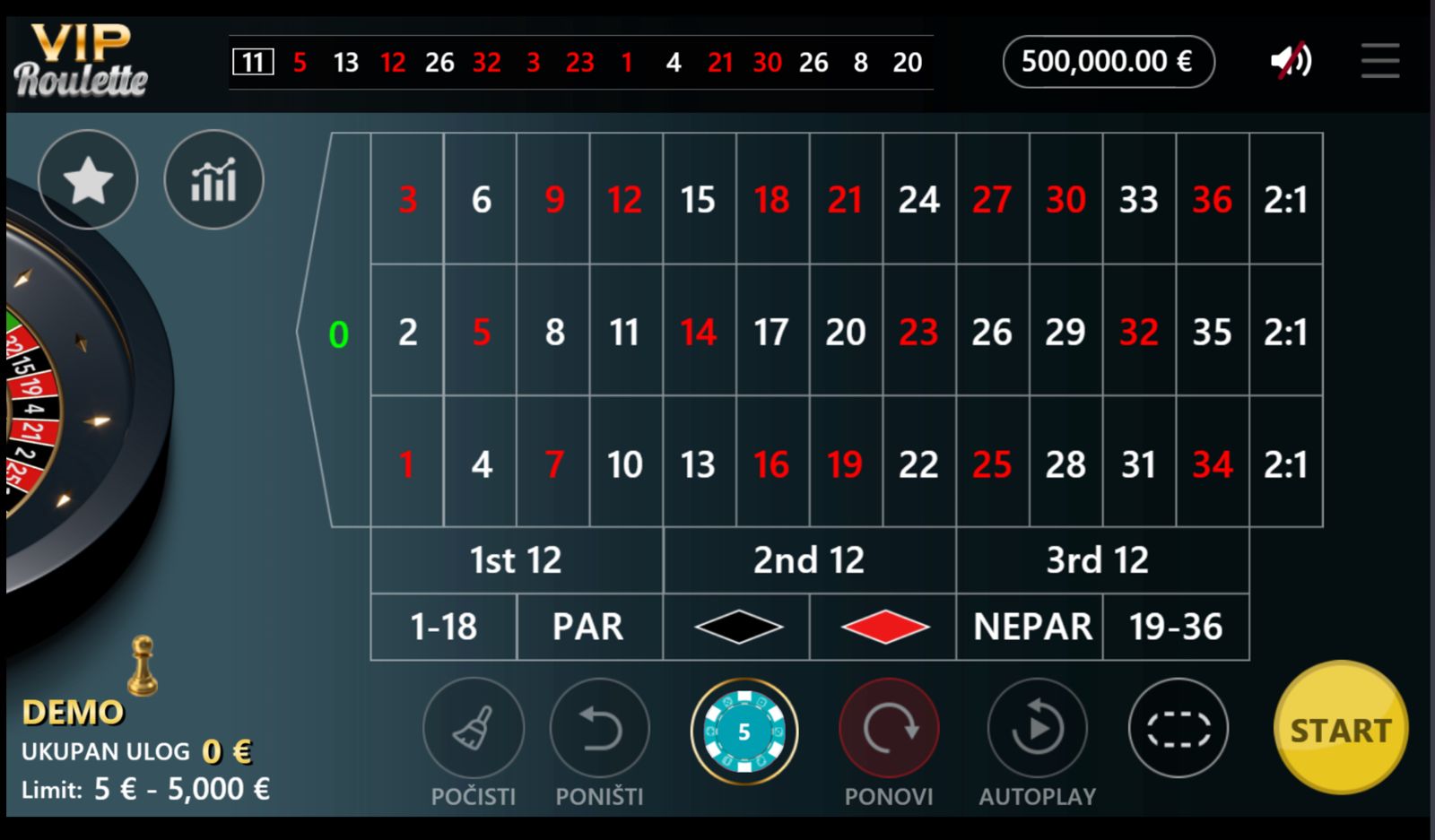 VIP ROULETTE se igra prema standardnim pravilima ruleta: odaberi uloge na brojeve, boje, par/nepar ili druge kombinacije i zavrti kotač. Cilj je pogoditi gdje će kuglica stati nakon okretanja. Minimalni ulog od 5,00 € i maksimalni od 5.000,00 € omogućuju igračima da biraju strategiju ovisno o